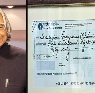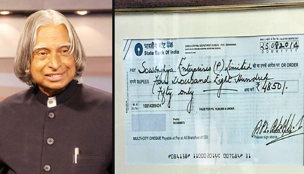 After the function, the company gifted a grinder to Dr Kalam. Though Dr Kalam was in need of a grinder as he didn’t have one at home, he refused to accept it as a gift. Instead, a cheque dated August 25, 2014 for Rs 4,850 was issued in favor of the company. The company out of respect for Dr Kalam, did not deposit the cheque for quite some time.