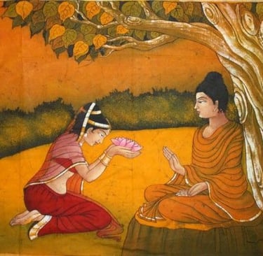 Buddha goes from town to town along with his retinue of monks. The period that lies ahead is arguably the most challenging with the approaching rainy season that will last for four months. Each monk or Bhikshu has to find a place to live. His disciple Ananda who is strikingly handsome in the course of his search, lands at the house of Amrapali the courtesan.